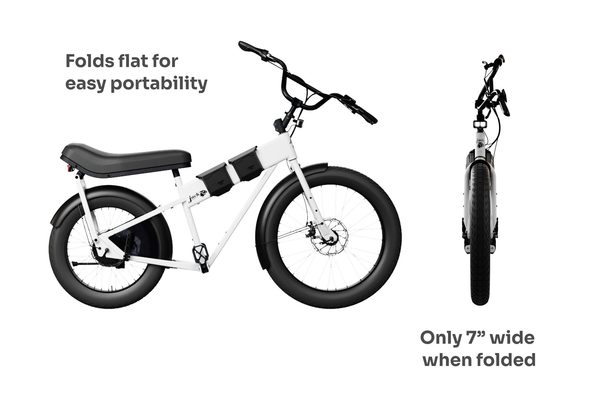 The first lightweight, portable 2-up seat small EV. The MG Doble combines a full-sized bike design and a 2-up seat with JackRabbit’s signature lightweight portability (for example, easily lift this bad boy into any bike rack).