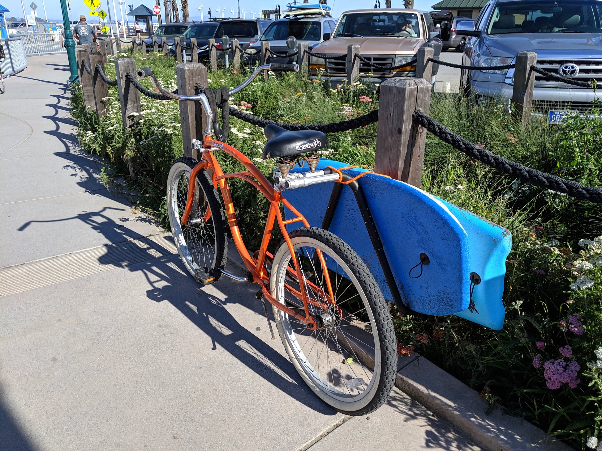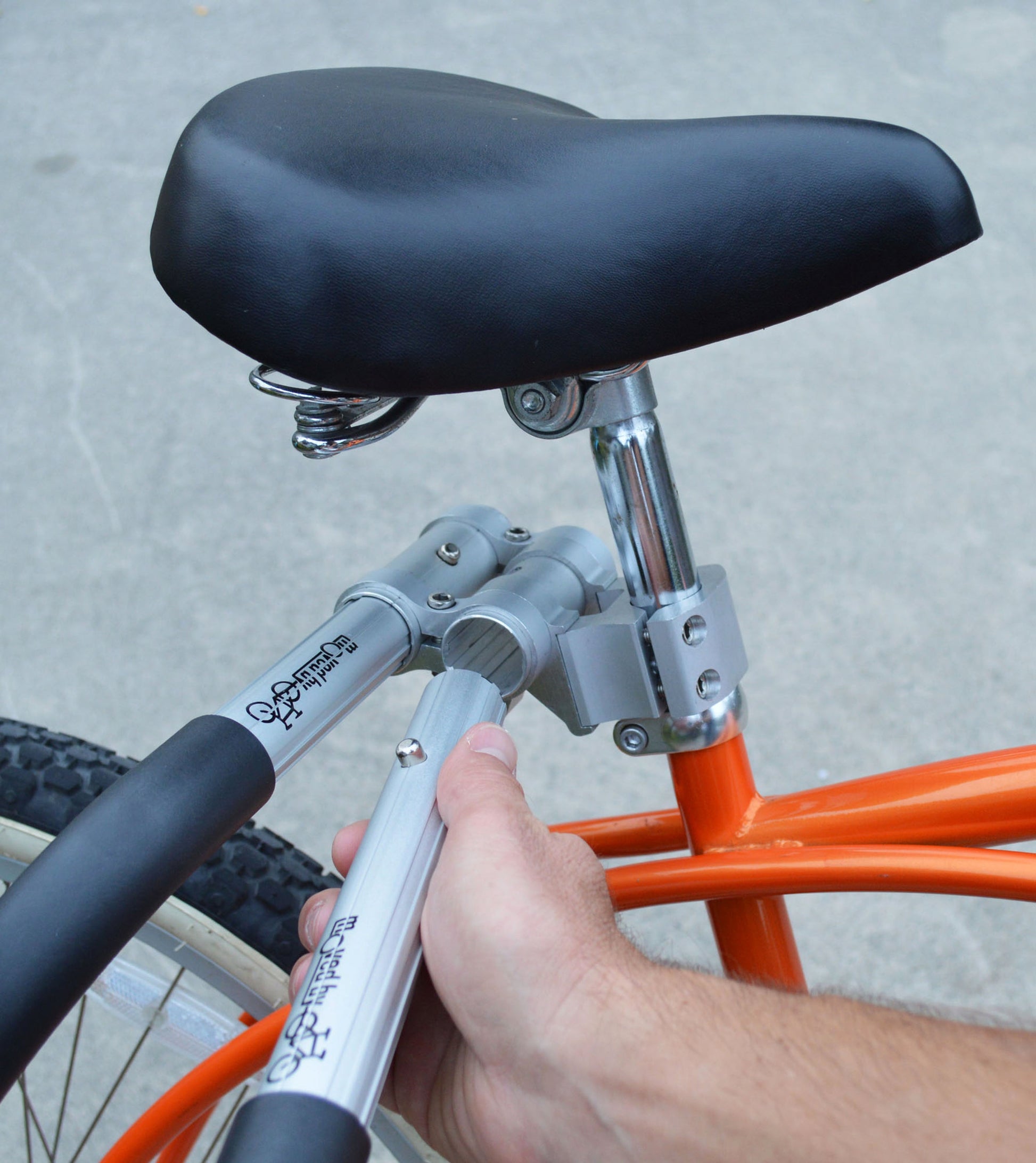 MBB Shortboard Racks build on the popular quick release bars of our Longboard Racks, but in a lower cost double seat post mount. If you only have short boards, usually boards less 7-8 feet in length, these racks are for you! Super quick and easy installation with a 4 bolt seat post clamp. The bars can be adjusted for angle and height to dial them in just the way you want them. Bars click in for use, or click out when they aren't needed, with a simple push of a button. All aluminum and stainless construction for coastal environments. Fit any bike with a seat post, and just about any board although we recommend them for boards 7-8 feet or less. These racks are also popular for carrying kiteboards, snowboards, skis, boogie boards, lawn chairs, and all sorts of similar objects